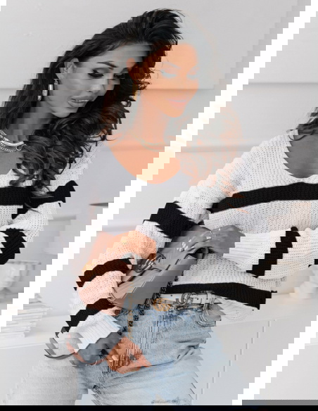 Sweter w paski z dekoltem V Ojella - wzór 2
