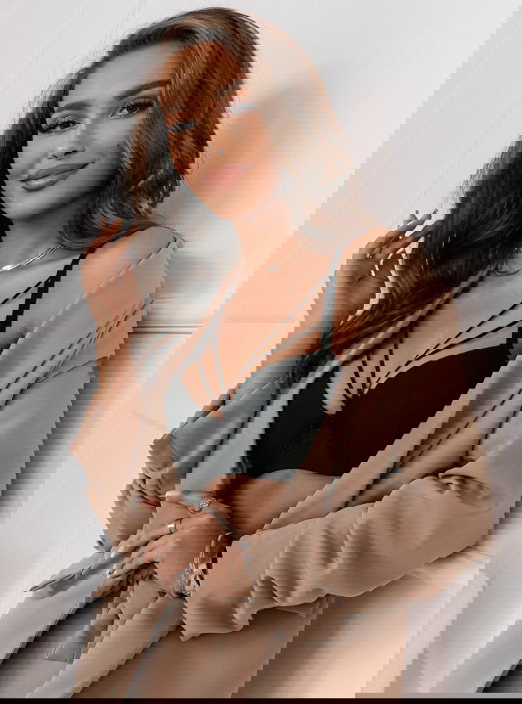 Modelka prezentuje produkty o rozmiarze S/M