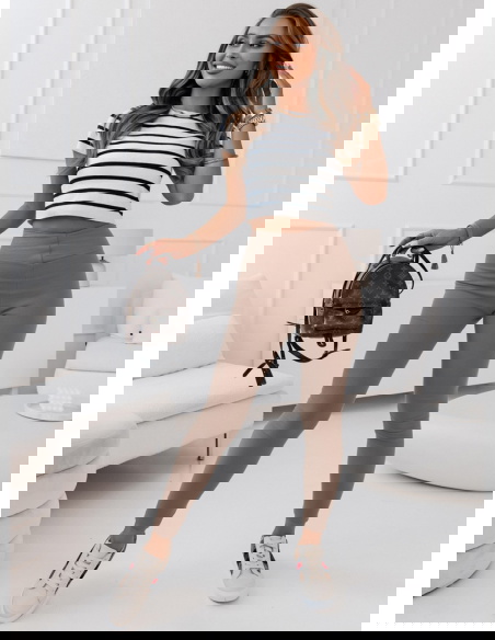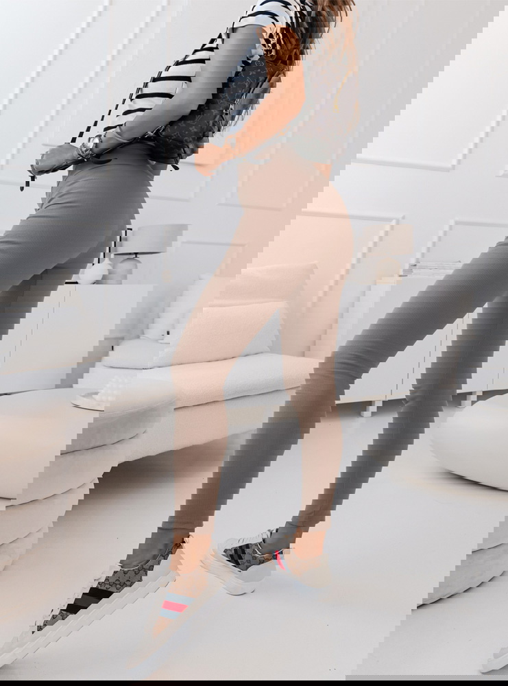 Beżowe prążkowane legginsy Terollk to stylowy element garderoby, który łączy w sobie wygodę legginsów z efektem prążkowanego wzoru, tworząc interesujący wygląd. Ich głównym elementem charakterystycznym są prążki, które nadają im dynamiczności i nowoczesności.
