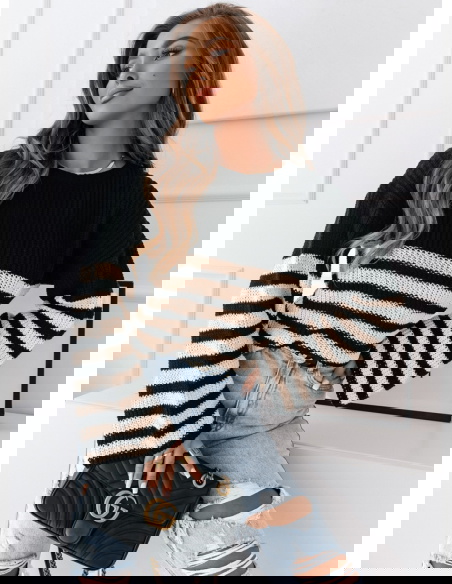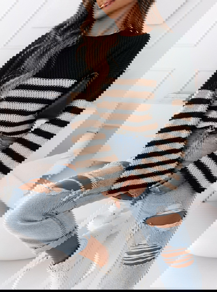 Sweter w paski z szerokimi rękawami Heveni - wzór 3 -