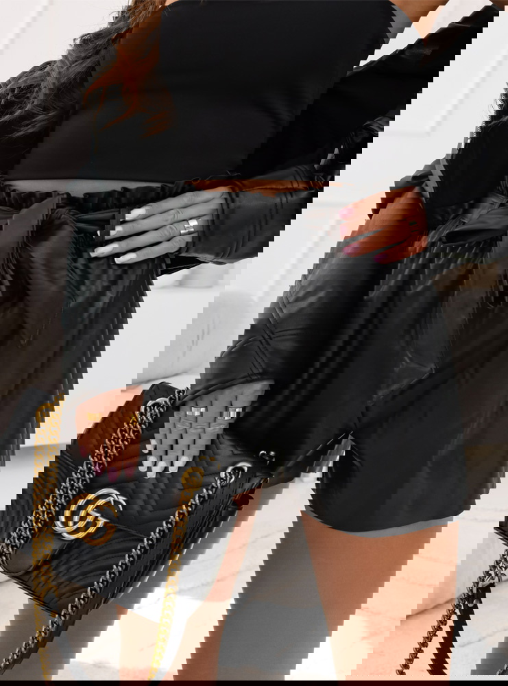 Czarne spodenki z eko skóry Lerkkop Spodenki te wykonane są z czarnej eko skóry, co nadaje im stylu i wyjątkowego wyglądu.