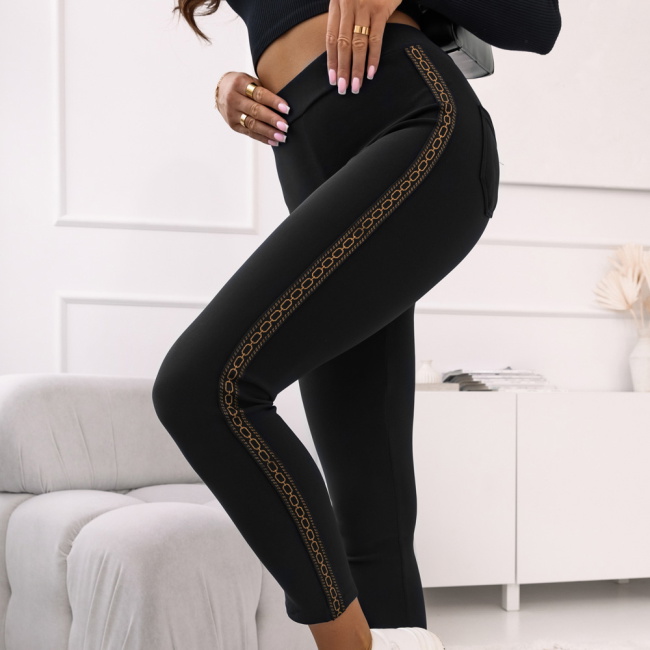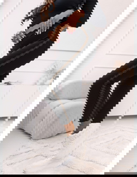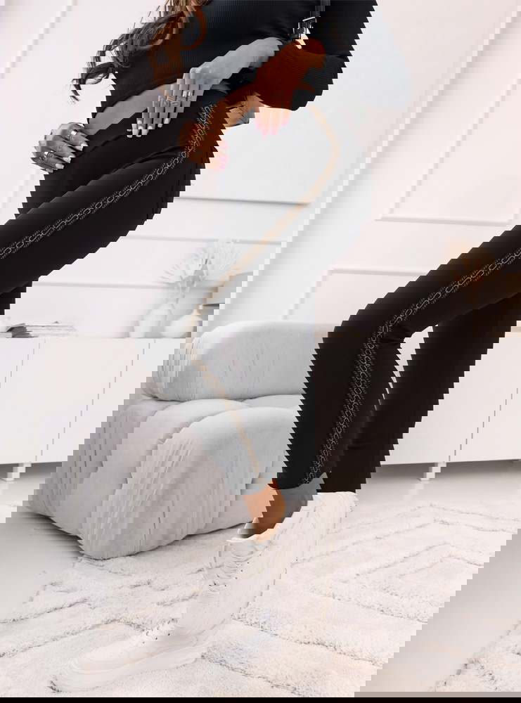 Czarne legginsy z lampasem z boku Penela Czarne legginsy z lampasem z boku Penela są idealne na różne okazje. Mogą być noszone na trening, spacer czy casualowe wyjścia.