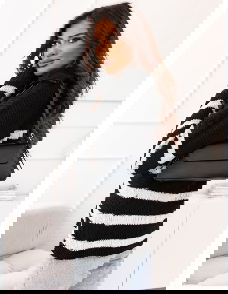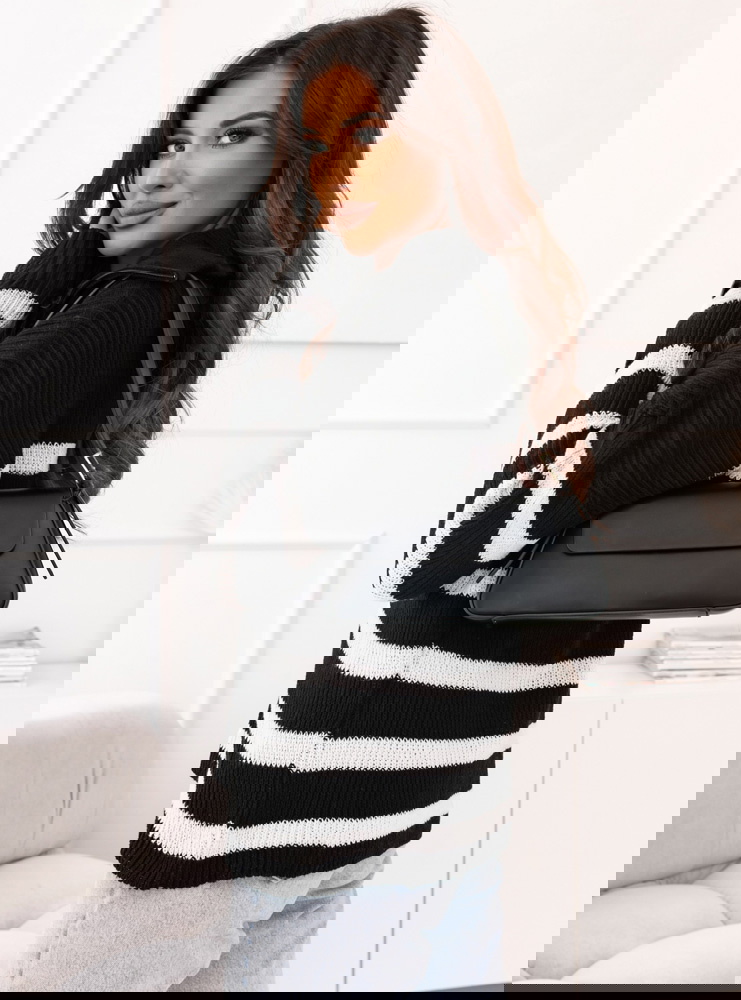 Czarny sweter w paski z kołnierzem Fionna - wzór 3