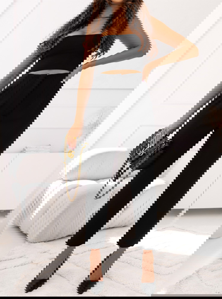 Czarne spodnie z przeszyciami Oprtiaa Czarne spodnie z przeszyciami to element, który dodaje klasy i wyrafinowania każdej stylizacji, tworząc modny i elegancki wygląd