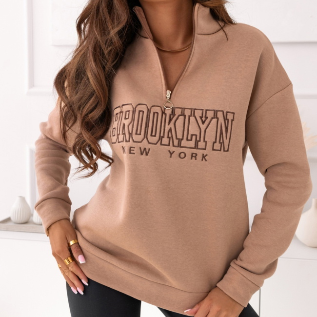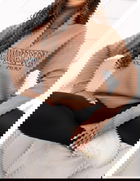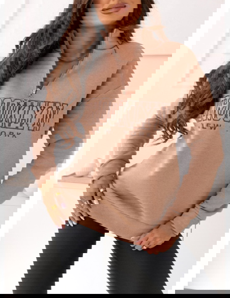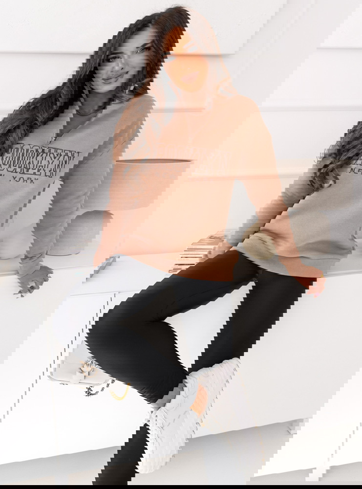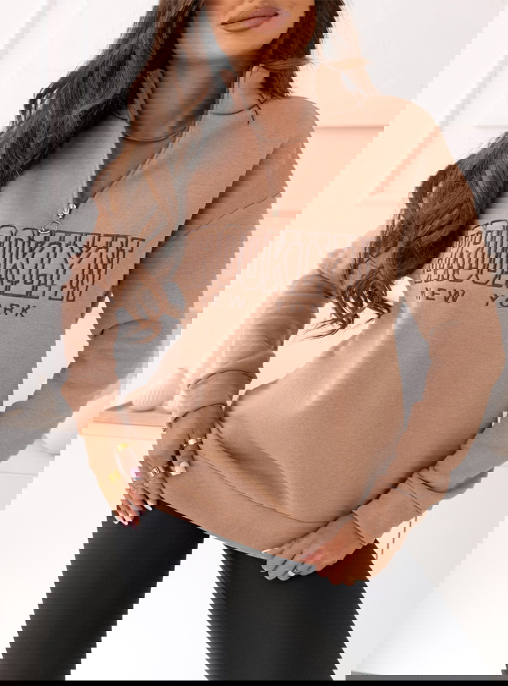 Beżowa bluza dresowa z kołnierzem i napisem Brooki