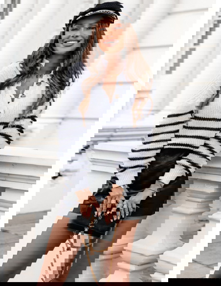 Sweter w paski z guzikami przy dekolcie Erimmo - wzór 1