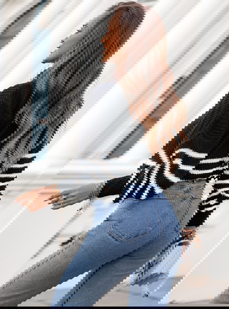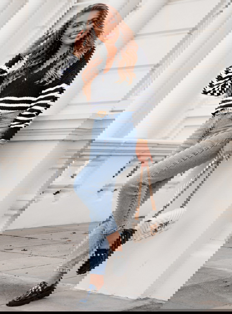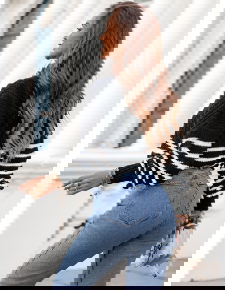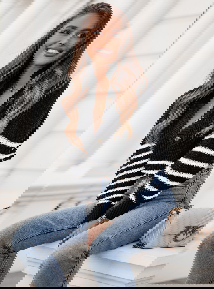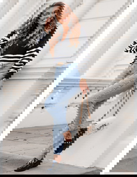 Sweter w paski z guzikami przy dekolcie Erimmo - wzór 3 Aby uzyskać jeszcze bardziej wyrafinowany wygląd, możesz dodać delikatne akcesoria i biżuterię. Sweter ten to kluczowy element jesiennej i zimowej garderoby, który łączy w sobie komfort i modę, co pozwoli Ci czuć się pewnie i stylowo przez cały sezon. Dzięki swojemu ponadczasowemu designowi, ten sweter stanie się ulubionym elementem Twojej kolekcji ubrań.