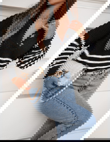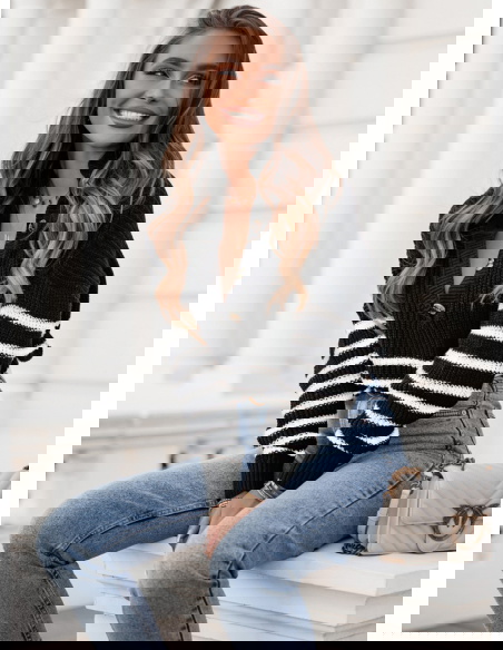 Sweter w paski z guzikami przy dekolcie Erimmo - wzór 3