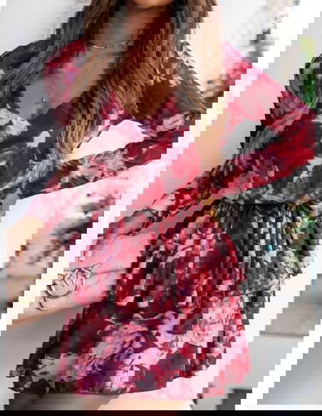 Wzorzysta sukienka z falbankami i wiązaniem w pasie Casarie - B1