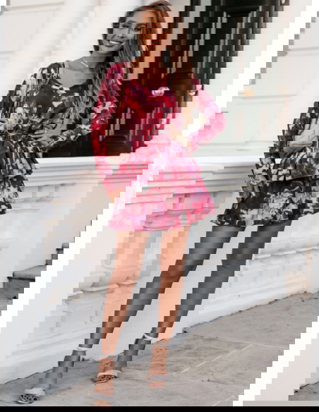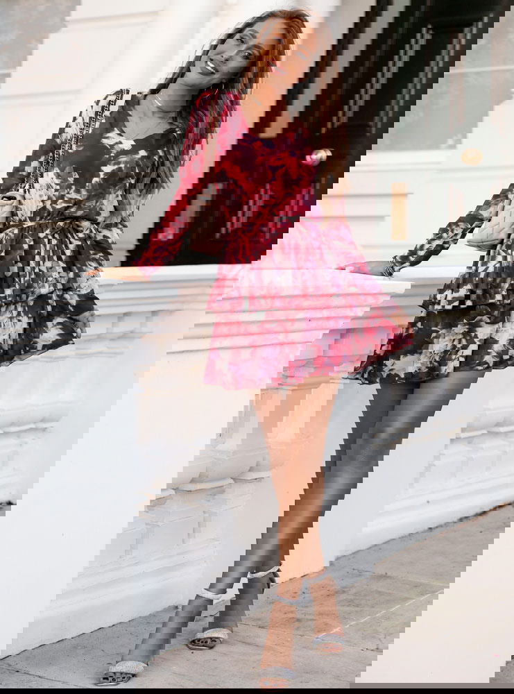 To urocza i dziewczęca kreacja, która łączy w sobie wyrazisty wzór z subtelnością falbanek. Jej wzór nadaje sukience wyjątkowego charakteru, tworząc efektowny wygląd. Sukienka ma wiązanie w pasie, które podkreśla sylwetkę i dodaje sukience elegancji.