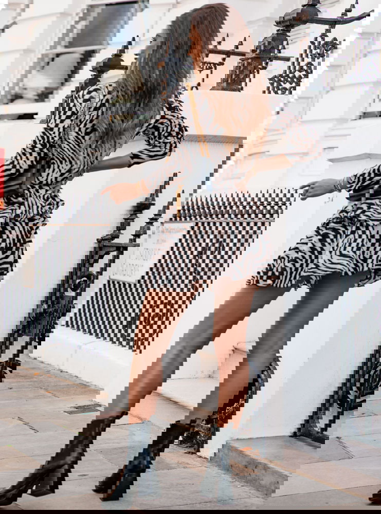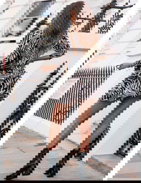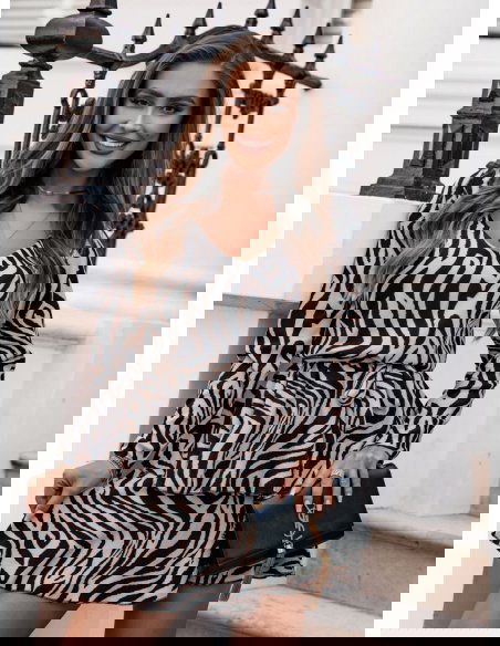 To wyjątkowy element damskiej garderoby, który wyróżnia się odważnym wzorem i dziewczęcym urokiem falbanek. Jej wzór zebry nadaje sukience wyrazistego i modnego charakteru, tworząc efektowny kontrast z klasycznym kolorem. Sukienka ma wiązanie w pasie, które podkreśla sylwetkę i dodaje sukience elegancji.