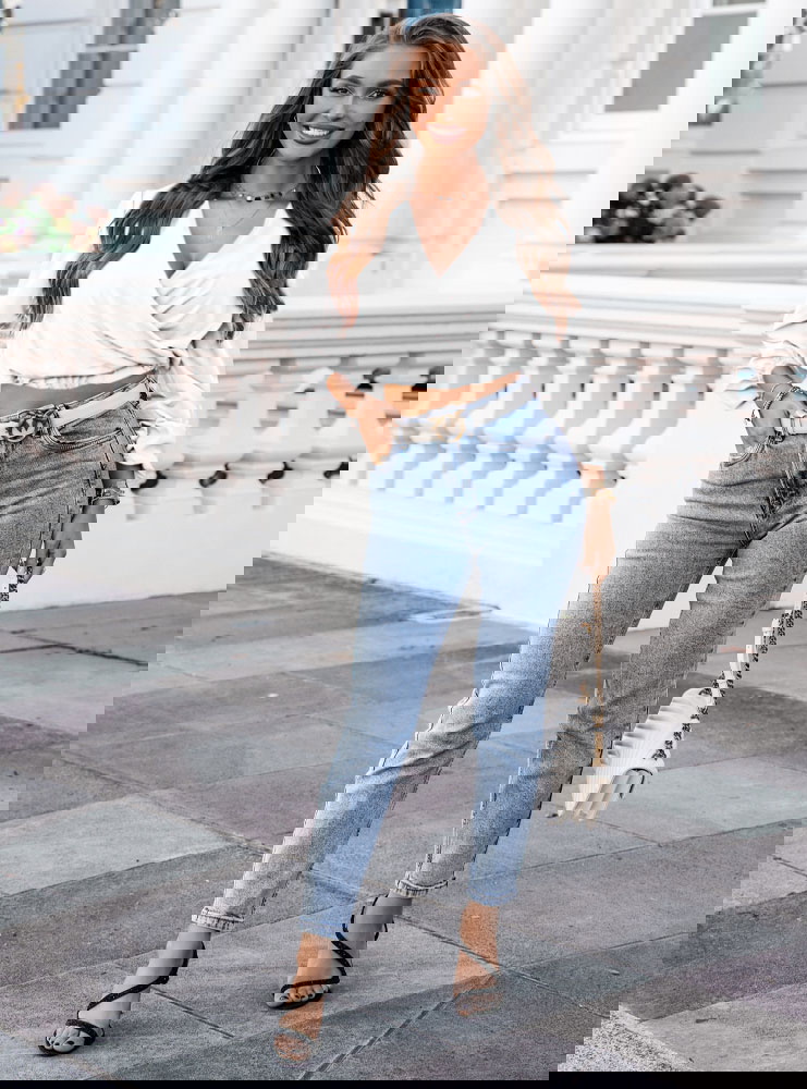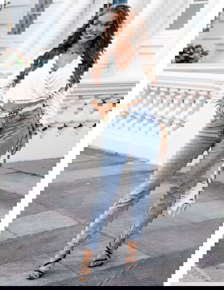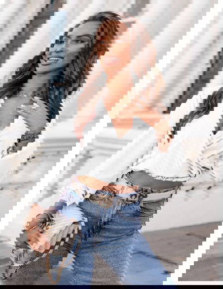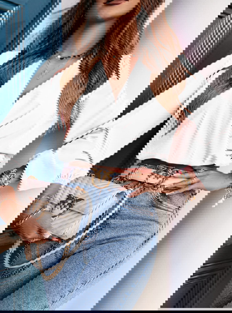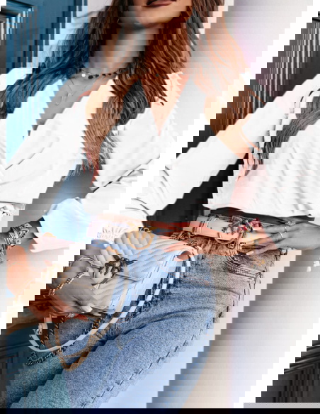 Biała bluzka z dekoltem V i długimi rękawami Haike