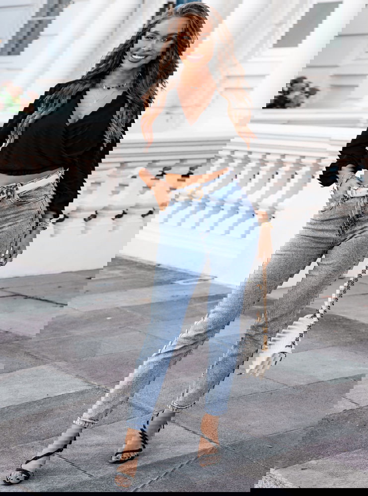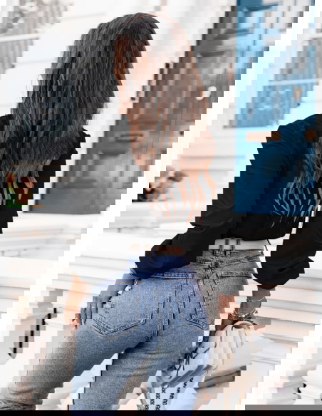 Czarna bluzka z dekoltem V i długimi rękawami to klasyka, która jest niezawodna i pasuje do wielu różnych stylizacji. Dekolt w literę V nadaje bluzce elegancji i subtelnie eksponuje odcinek szyi, co dodaje uroku. Długie rękawy sprawiają, że jest to doskonały wybór na chłodniejsze dni, zapewniając jednocześnie stylowy wygląd.