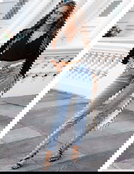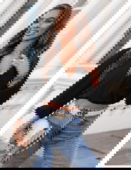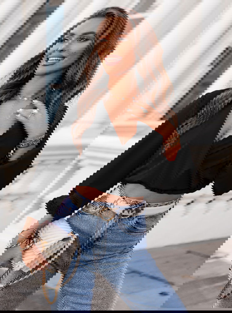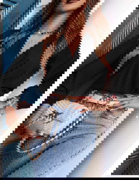 Czarna bluzka z dekoltem V i długimi rękawami Haike