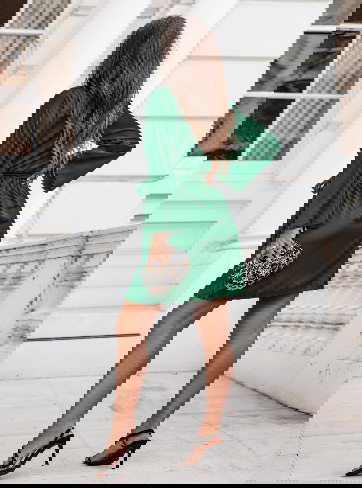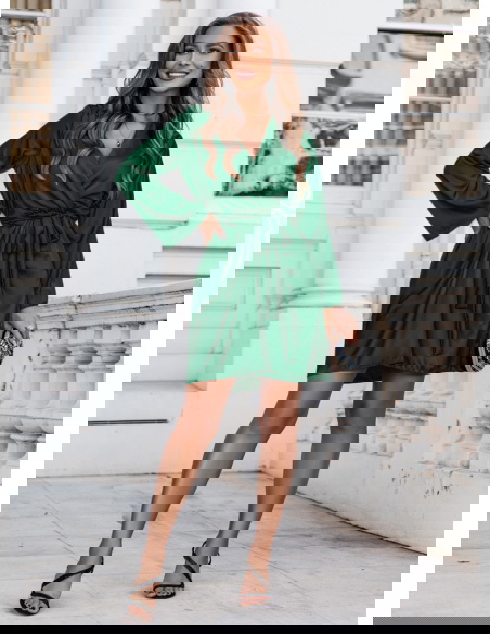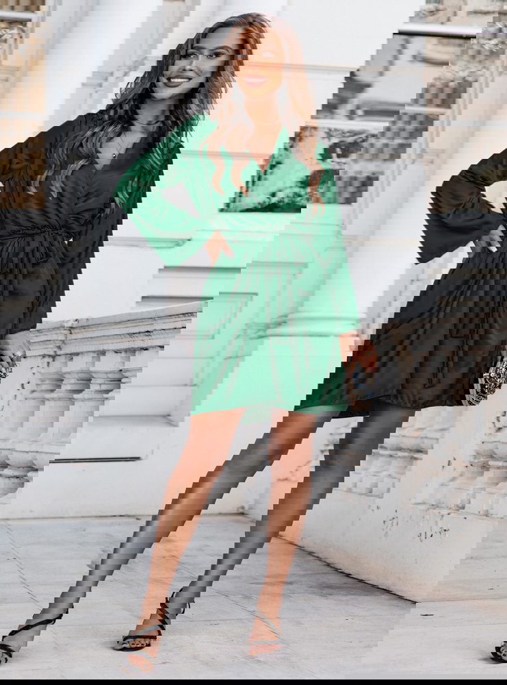 Satynowa sukienka z przekładanym dekoltem i paskiem w kolorze butelkowej zieleni to wyraz elegancji i uroku, jednocześnie wprowadzając odrobinę świeżości i natury do Twojej stylizacji. Przekładany dekolt nadaje sukience subtelności i elegancji, podkreślając odcinek szyi. Materiał satynowy nadaje jej luksusowego wyglądu i gładkości w dotyku. Pasek w talii podkreśla sylwetkę i dodaje sukience wyraźniejszego kształtu. To detal, który nadaje sukience jeszcze więcej charakteru i stylu.