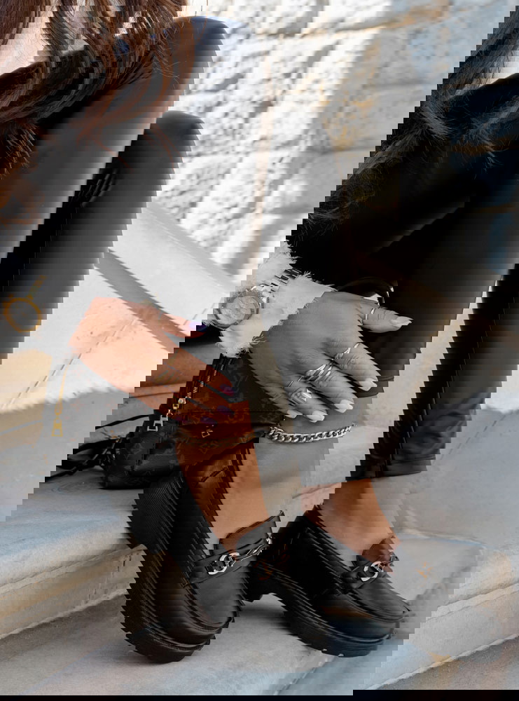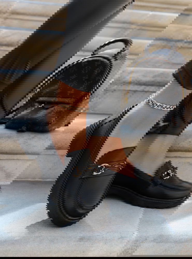 Klasyczny czarny kolor doskonale komponuje się z różnorodnymi strojami, zarówno formalnymi, jak i nieco bardziej swobodnymi. Ozdobna klamra umieszczona na cholewce dodaje subtelnej dawki luksusu i elegancji, podkreślając unikalność tego obuwia.
