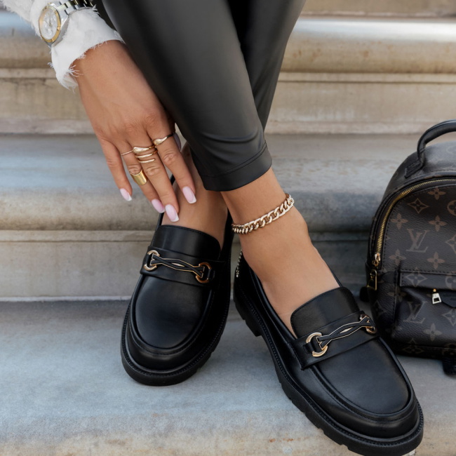 Czarne mokasyny z ozdobna klamrą Eolia Te mokasyny są idealnym wyborem dla osób ceniących wygodę i styl w jednym, tworząc niezwykle atrakcyjną propozycję dla modnych i świadomych swojego wyglądu jednostek.