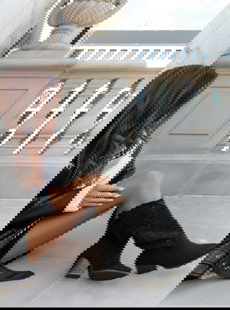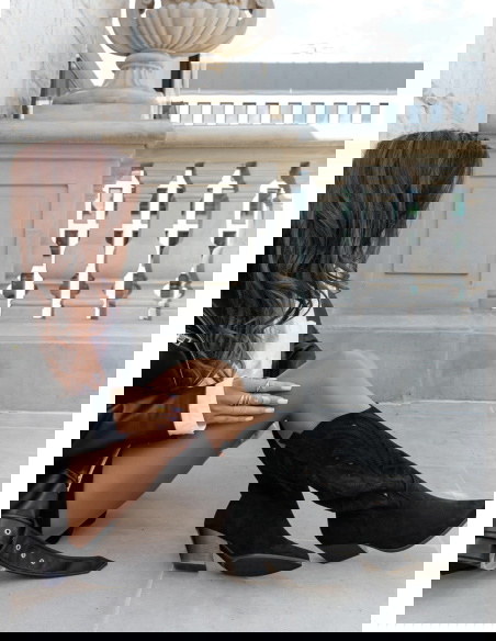 Czarne zamszowe kowbojki to obuwie o wyrazistym charakterze i ponadczasowym stylu. Ich cholewka wykonana z miękkiego zamszu nadaje butom elegancji i wyjątkowej faktury. Kowbojki cechuje charakterystyczny, spiczasty nosek, który dodaje im nuty westernowego uroku. Niski obcas o kształcie kowbojskiego obcasa stanowi zarówno modny element, jak i gwarantuje wygodę noszenia przez cały dzień.