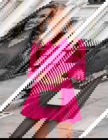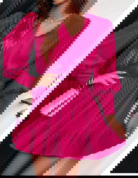 Sukienka z falbaną i bufiastymi rękawami Solekka - fuksja