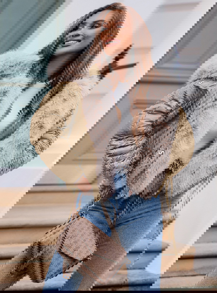 Beżowa puchowa kurtka z futerkiem Tyerre To ubranie, które nie tylko chroni przed zimnem, ale także prezentuje się stylowo i elegancko.
