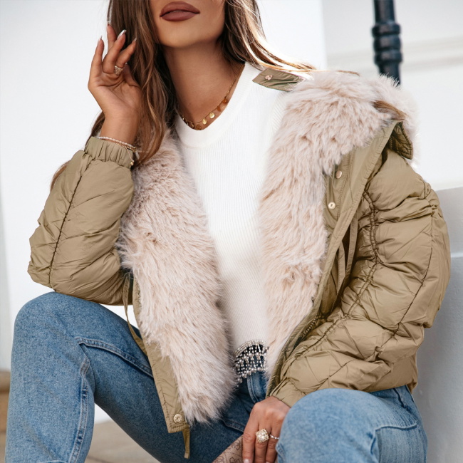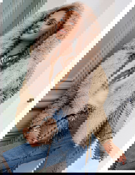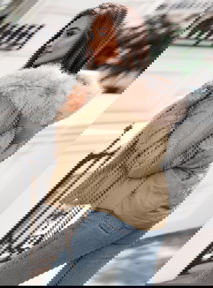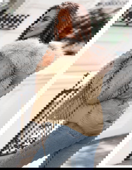 Beżowa puchowa kurtka z futerkiem Tyerre