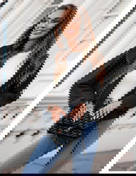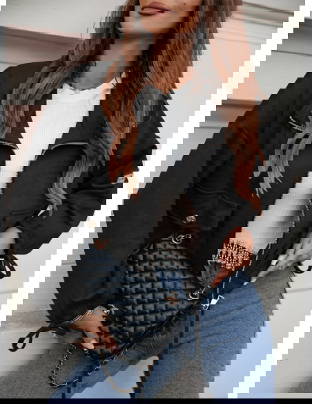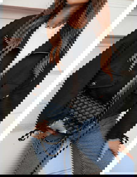 Czarna zamszowa kurtka z kieszeniami Astina to elegancka i wszechstronna propozycja, która doskonale nadaje się na wiele różnych okazji. Zamsz to luksusowy materiał, który nadaje kurtce wyjątkowego wyglądu i tekstury. Czarny kolor jest ponadczasowy i pasuje do wielu innych ubrań, dzięki czemu kurtka jest łatwo dopasowywalna do różnych stylizacji.