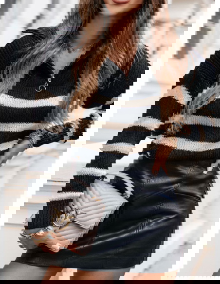 Sweter w paski z wysokim golfem Monecca - wzór 4 Możesz go zestawiać z różnymi spodniami czy spódnicami, tworząc różnorodne looki.