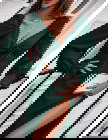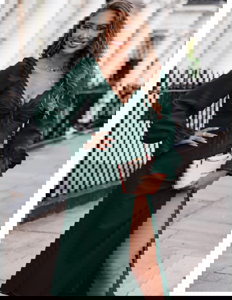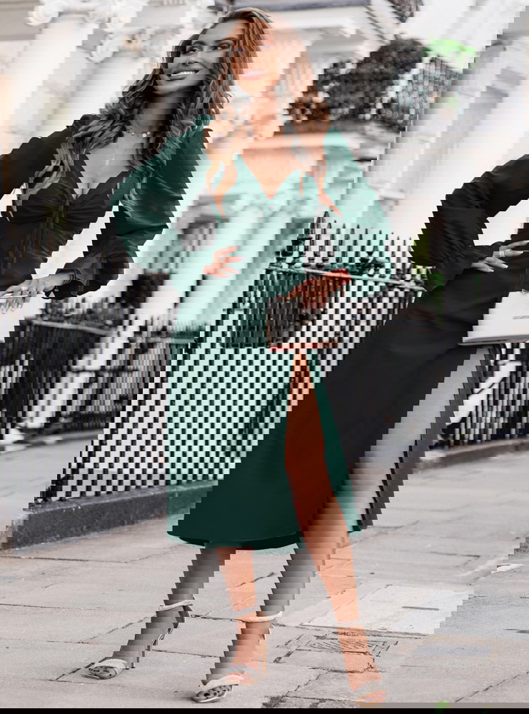 Sukienka midi z wiązaniem na dekolcie i rozcięciem Mezkoo - butelkowa zieleń