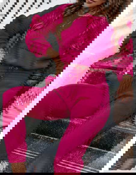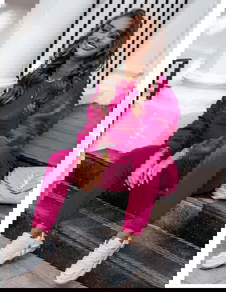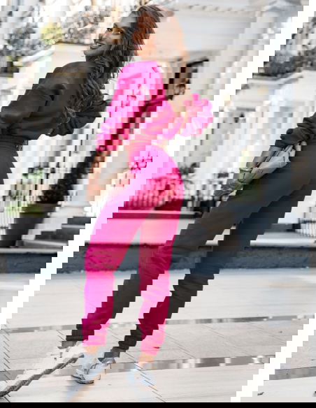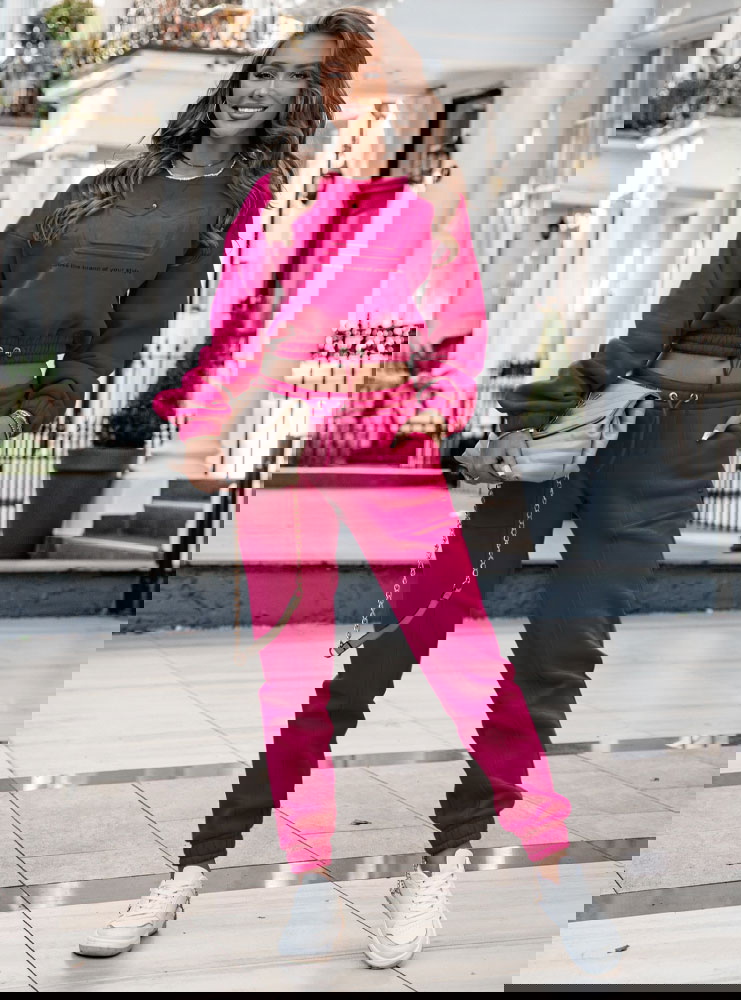 Komplet dresowy ze ściągaczami Luciee - fuksja Materiał, z którego wykonany jest ten komplet dresowy, jest miękki i przyjemny w dotyku, co zapewnia komfort i swobodę ruchu. To doskonała opcja na aktywny tryb życia, chłodniejsze dni, ale także na wygodę w domu czy spontaniczne spotkania ze znajomymi. Fuksja nadaje zestawowi wyrazistego charakteru, pozwalając wyrazić indywidualność i poczuć się pewnie w każdej sytuacji.