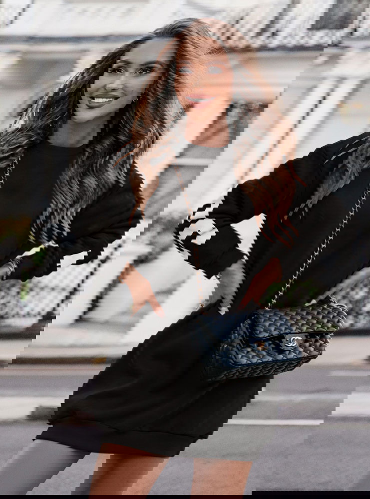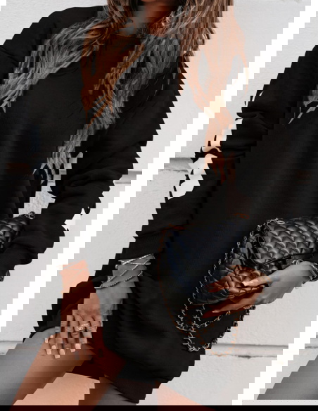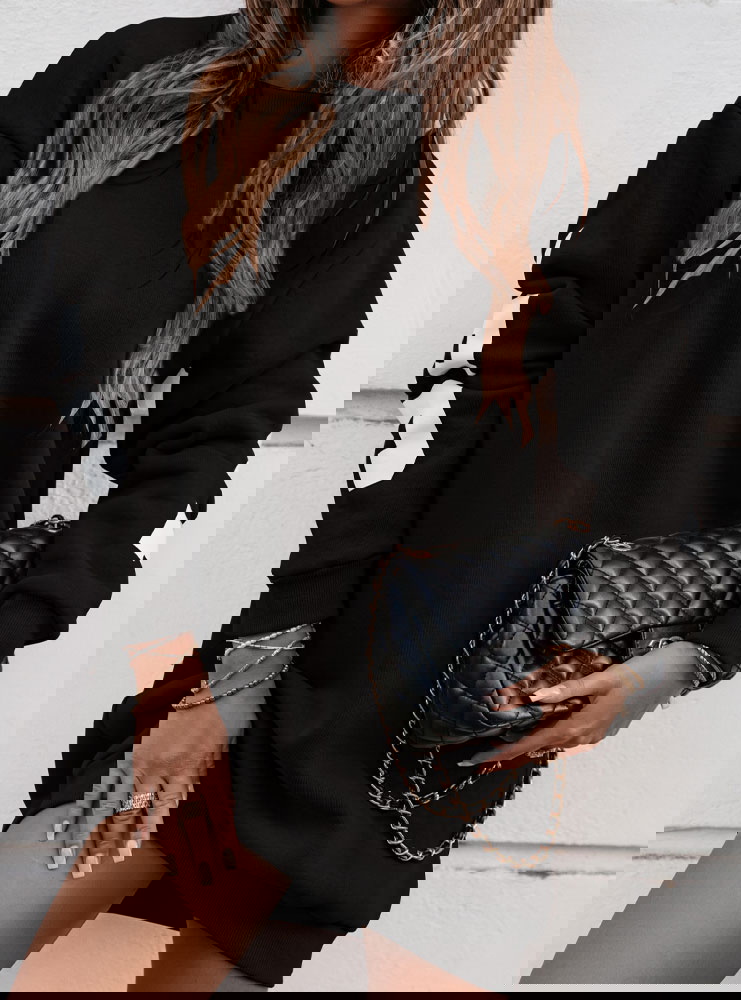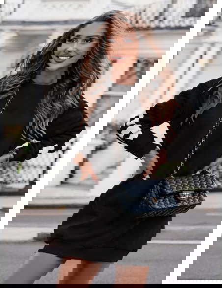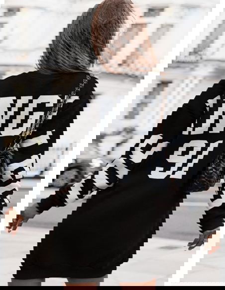 Czarna sukienka dresowa z napisami na plecach Senny Jej czarny kolor jest ponadczasowy i łatwy do zestawienia z różnymi dodatkami, co czyni ją wszechstronną i odpowiednią na wiele okazji. Dodatkowo, napisy na plecach nadają sukience niepowtarzalnego charakteru, co przyciąga uwagę i pozwala wyrazić swoją indywidualność.