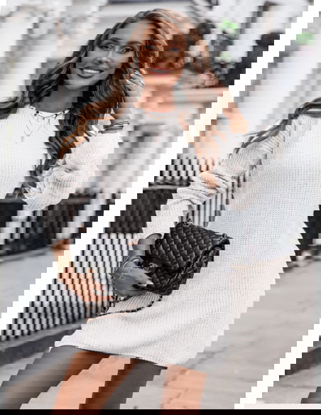 To połączenie wygody i stylu, które sprawiają, że jest idealna na wiele różnych okazji. Wykonana z miękkiego i ciepłego materiału, ta sukienka jest doskonałym wyborem na chłodniejsze dni. Swetrowy materiał zapewnia komfort noszenia, a zarazem dodaje sukience przytulności. Czarny pasek, który jest częścią zestawu, nadaje sukience charakteru i umożliwia podkreślenie tali, co dodaje całej stylizacji elegancji.