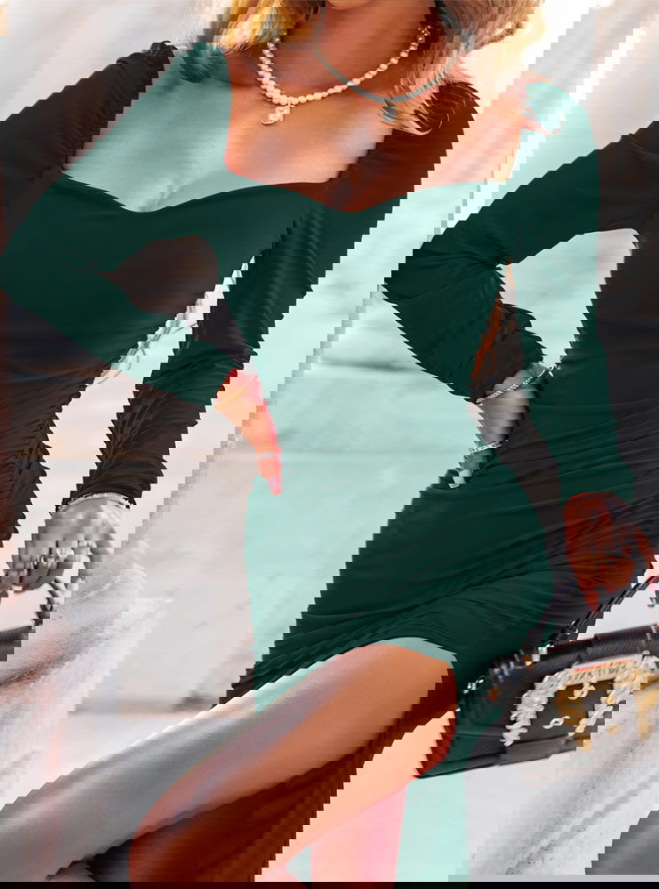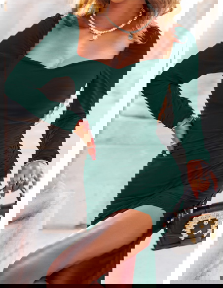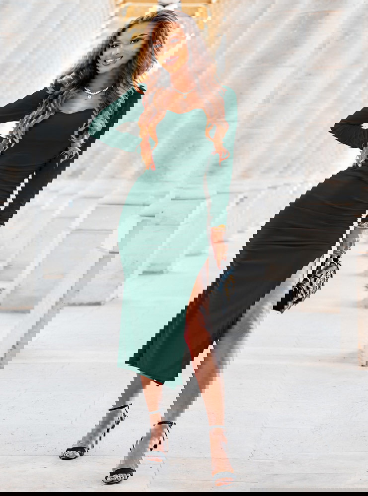 To niezwykła kreacja, która zachwyca swoim wyglądem i elegancją. Ta sukienka jest przeznaczona dla kobiet, które cenią sobie styl, wygodę i wyjątkowe detale. Głównym elementem tej sukienki jest jej wyjątkowy kolor - butelkowa zieleń. To odcień, który nadaje sukience głębi i elegancji, jednocześnie pozostając subtelnie oryginalnym.
