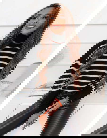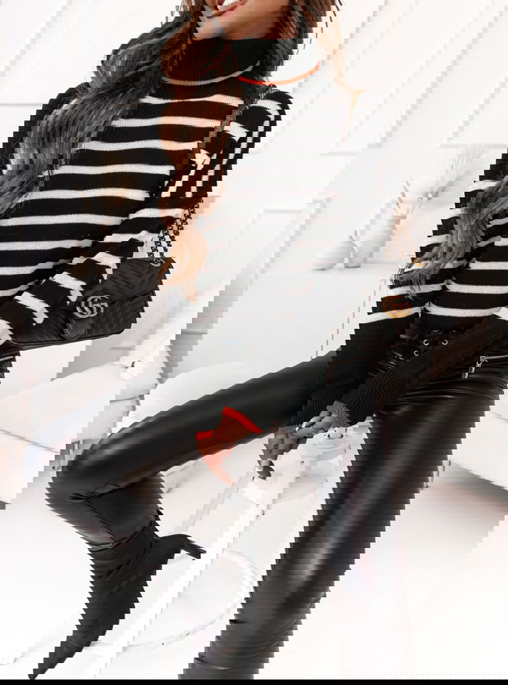 Czarny sweter w paski z golfem Otillie - wzór 1 to modne i stylowe rozwiązanie na chłodniejsze dni.