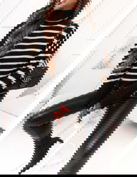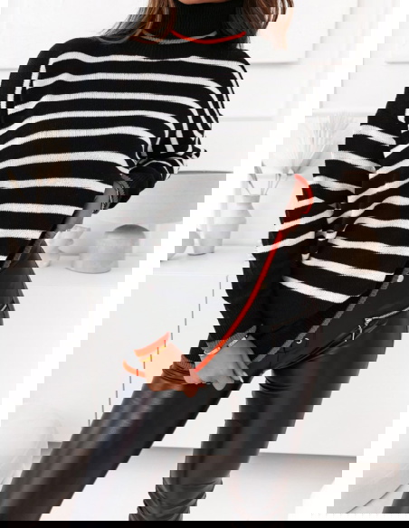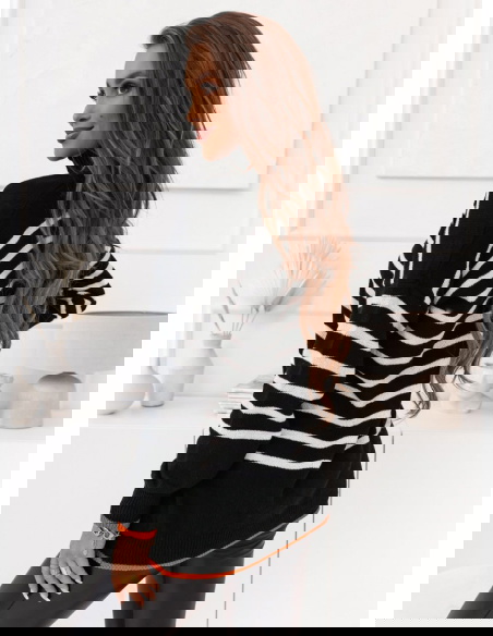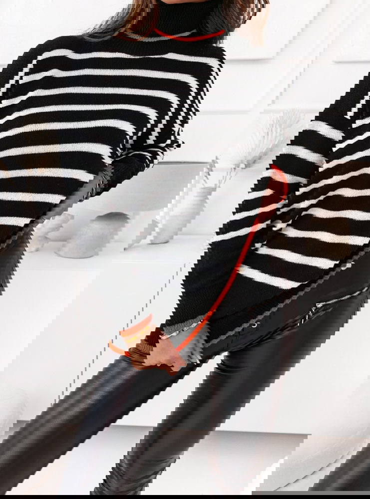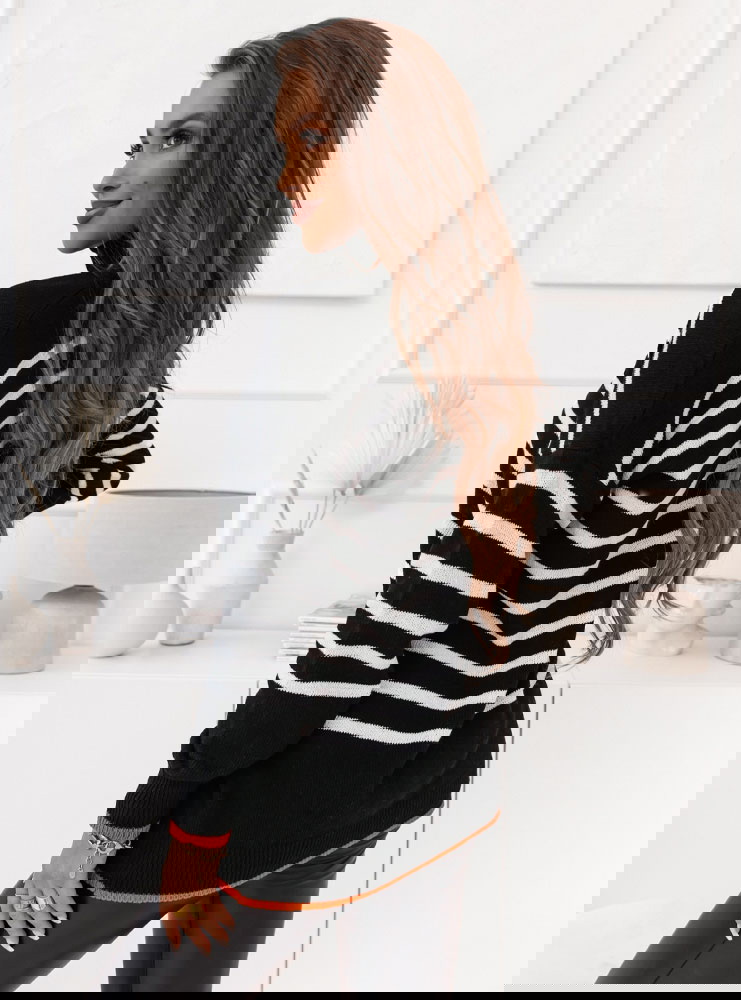 Czarny sweter w paski z golfem Otillie - wzór 1