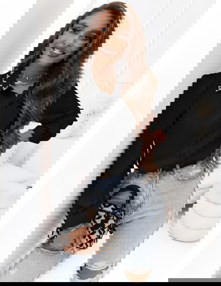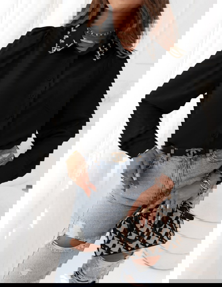 Czarna koszula z ozdobnym kołnierzykiem Vieska