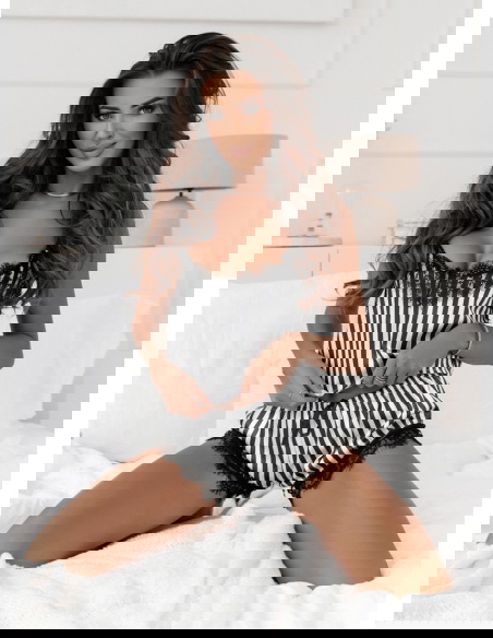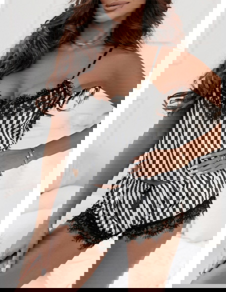 Ta piżama to wyjątkowa moda na dobranoc. Klasyczne paski dodają jej uroku, a delikatne materiały są przyjemne dla skóry. To ubranie, w którym możesz wyglądać i czuć się dobrze, nawet w chwilach relaksu.