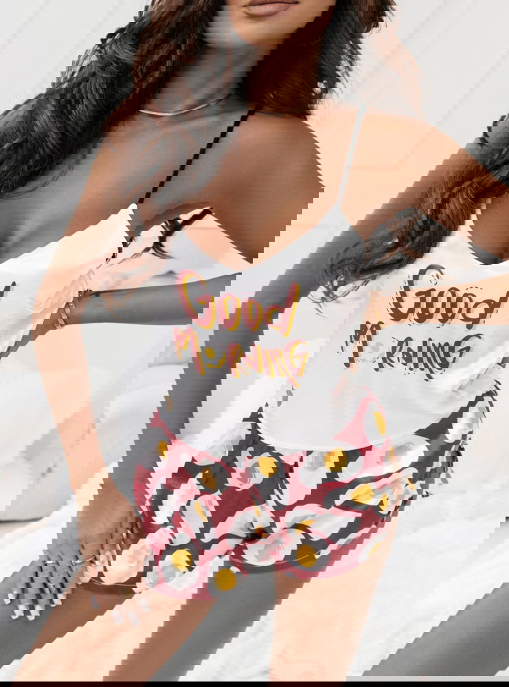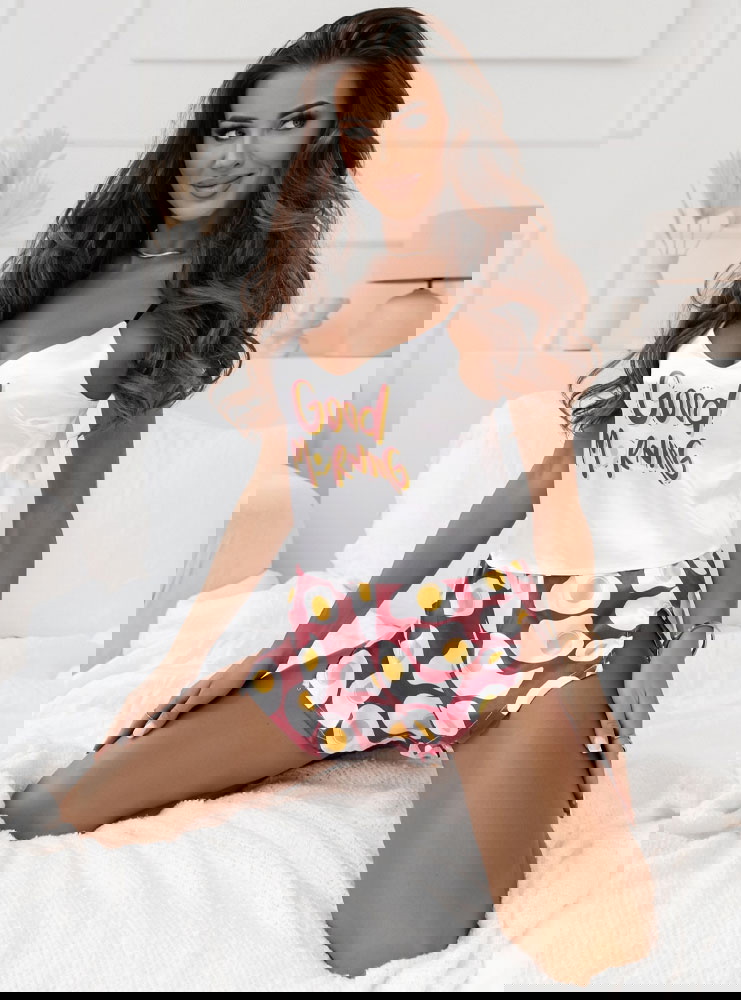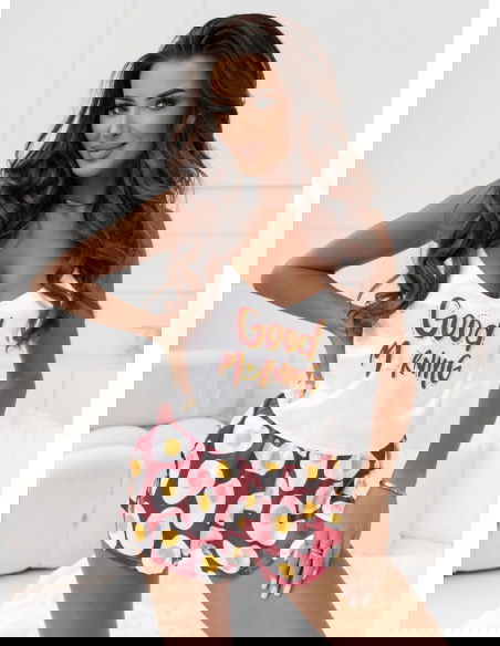 Bordowa satynowa piżama z modnym nadrukiem Marli Jej miękki materiał otula ciało delikatnością, a modny nadruk dodaje jej charakteru.