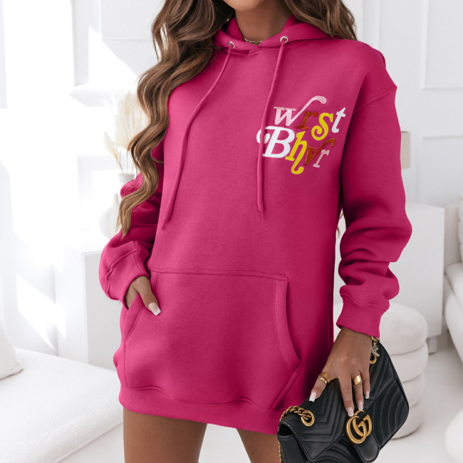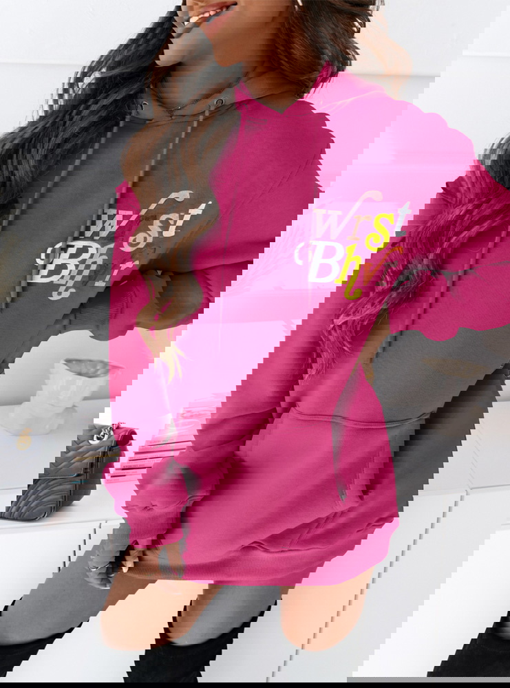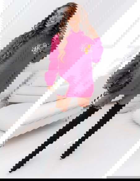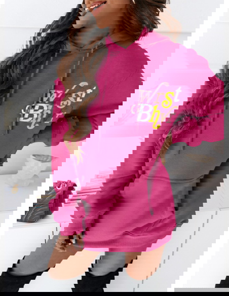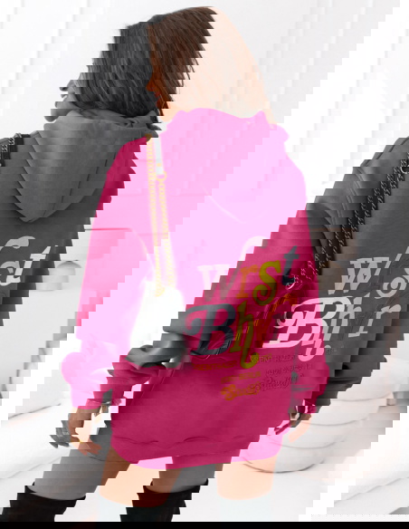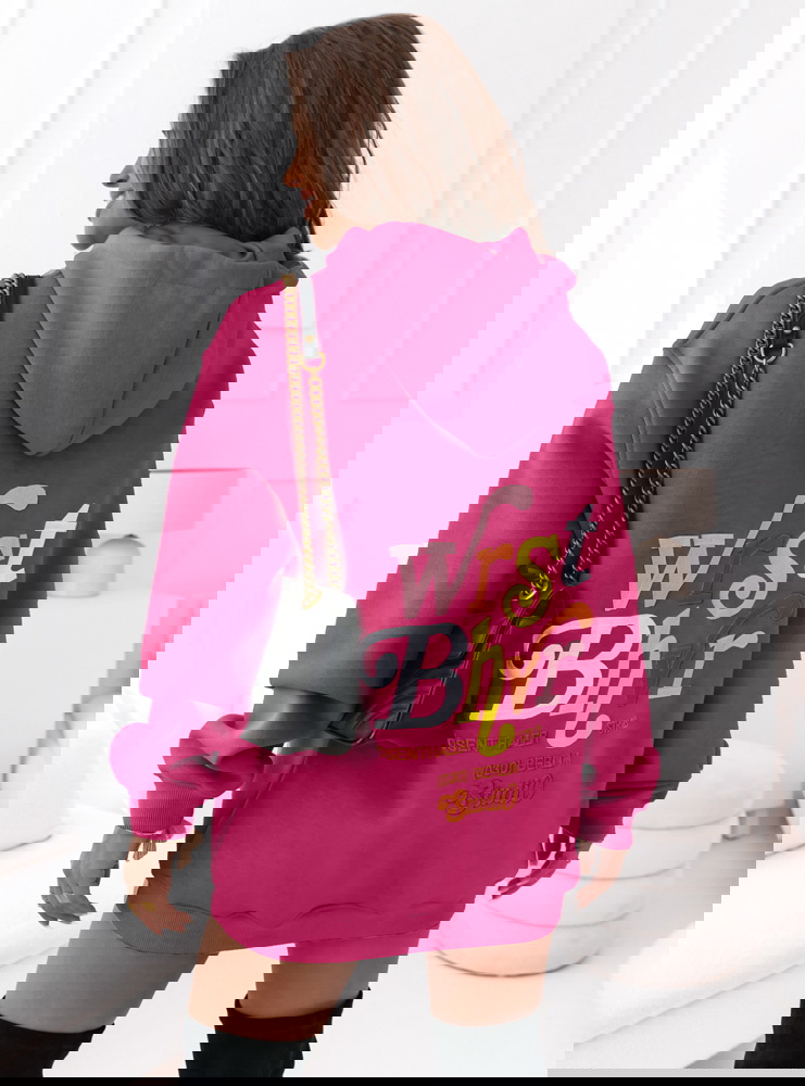 Długa bluza z kapturem typu kangurka Selene - fuksja