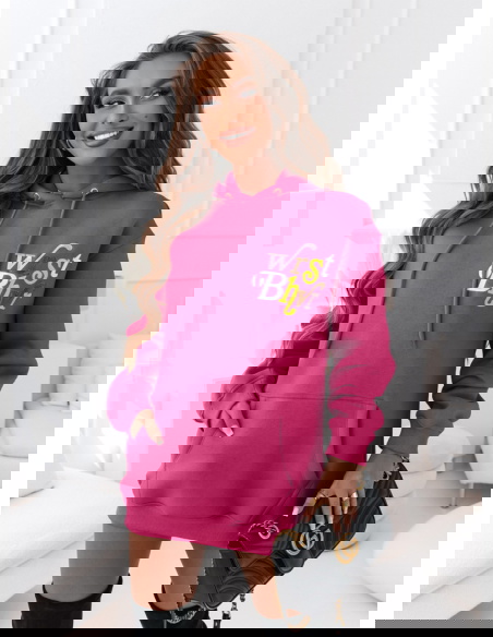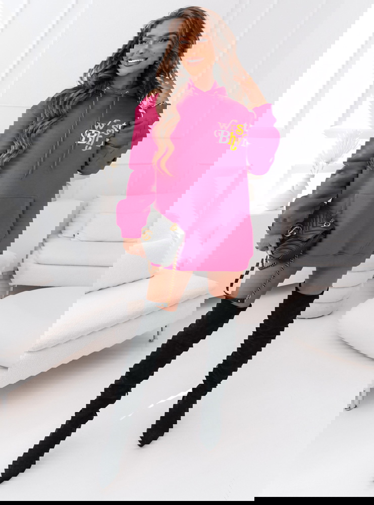 Długa bluza z kapturem typu kangurka Selene - fuksja Wykonana z wysokiej jakości materiałów, ta bluza gwarantuje komfort i trwałość.