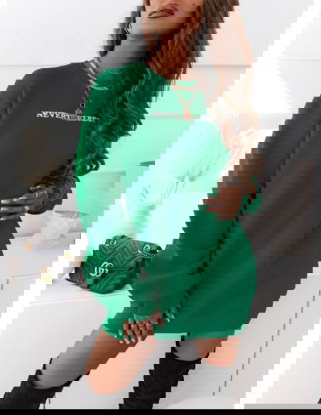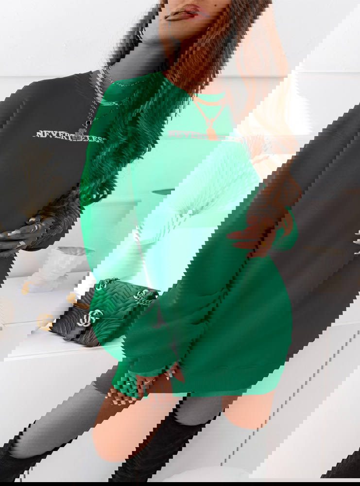 Długa bluza sportowa z napisami Syntia - butelkowa zieleń