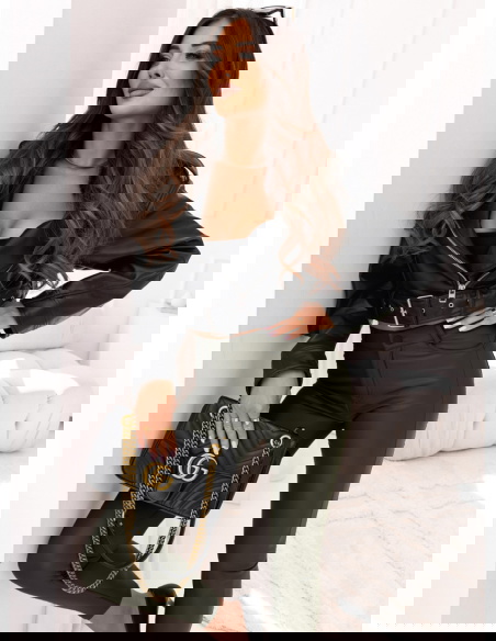 Spodnie z eko skóry Lorkoo - khaki Mogą być doskonałym elementem zarówno codziennych stylizacji, jak i na wieczorne wyjścia, gdzie chcesz prezentować się szykownie i wyjątkowo.