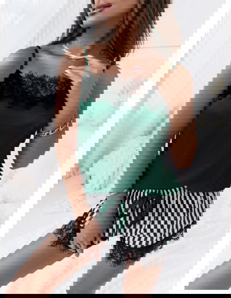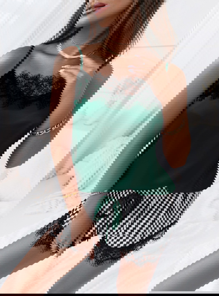 Dwuczęściowa satynowa piżama z koronką Pyper - butelkowa zieleń