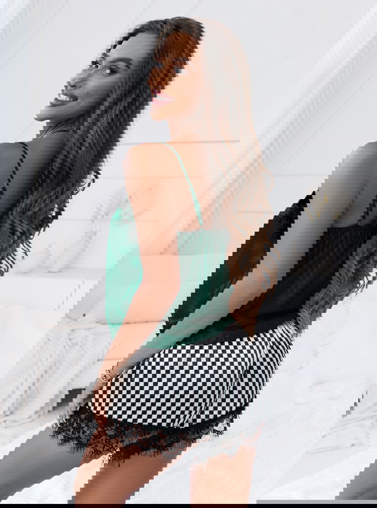 Dwuczęściowa satynowa piżama z koronką Pyper w butelkowej zieleni to propozycja, która łączy w sobie elegancję i wygodę. Jej głęboki, butelkowy kolor nadaje jej wyrazistego charakteru, a koronkowe detale dodają nutki luksusu. Ta piżama to idealny wybór na wieczorny relaks w domowym zaciszu, ale także na wyjątkowe okazje, gdzie chcesz poczuć się wyjątkowo.