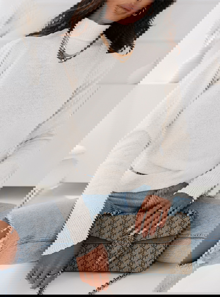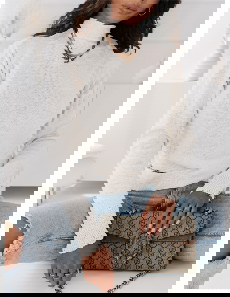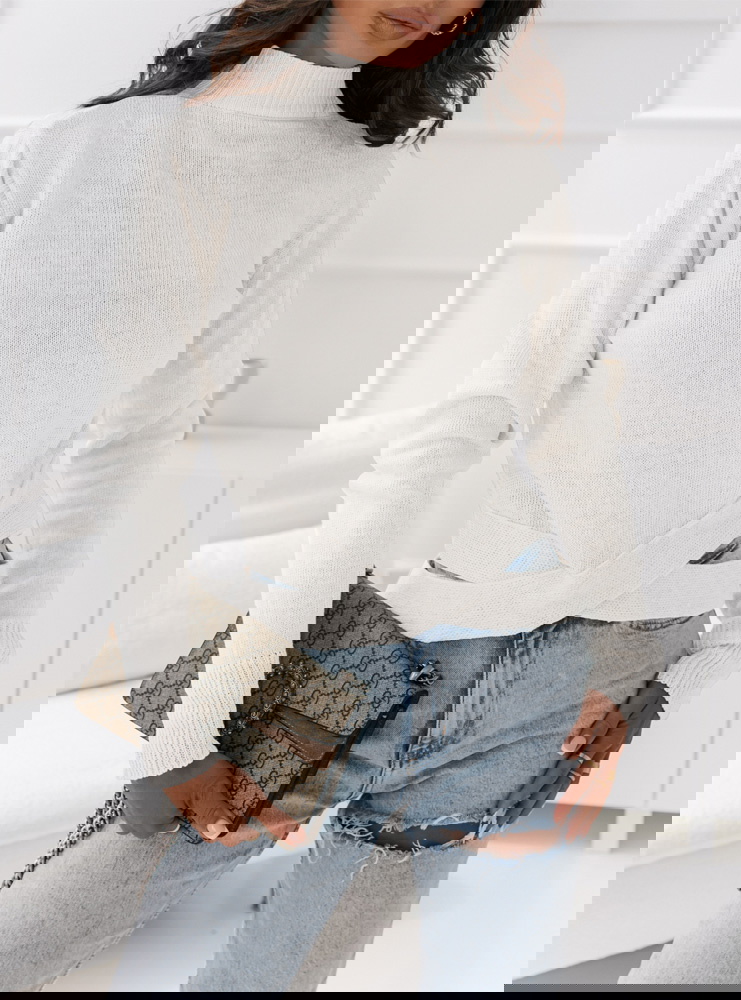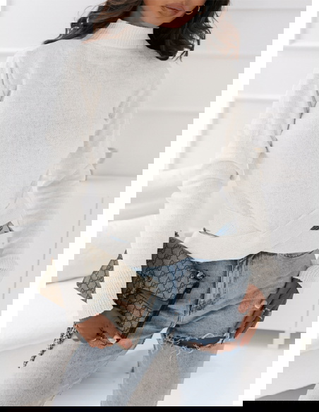 Biały sweter z ozdobnym dołem Konna