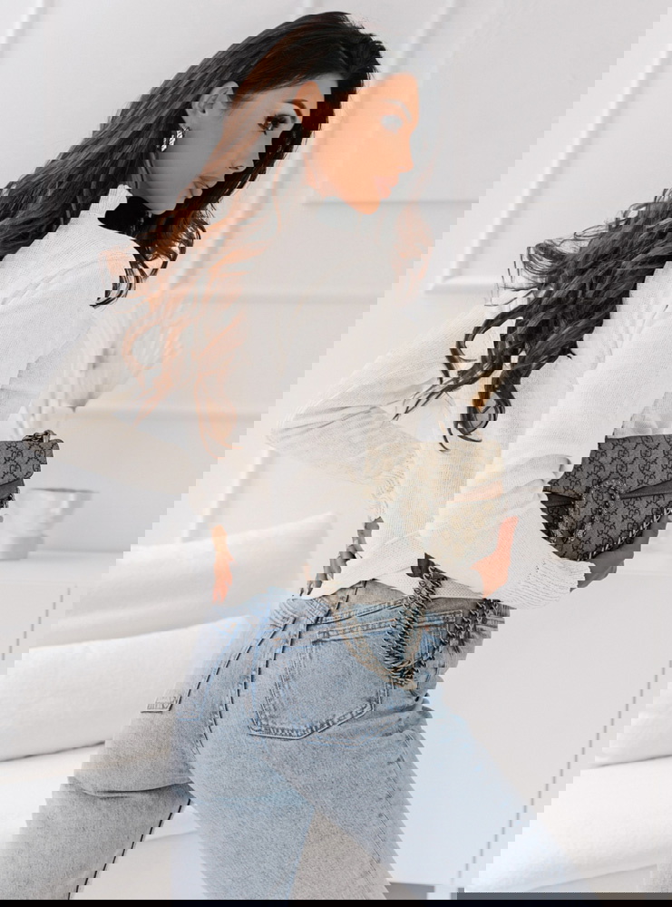 Biały sweter z ozdobnym dołem Konna to połączenie delikatności i elegancji. Jego jasny kolor białego jest czysty i subtelny, co sprawia, że jest idealnym wyborem na wiele okazji.To ubranie, które wyraża Twoją pewność siebie i indywidualny styl, idealne na wieczory pełne elegancji.