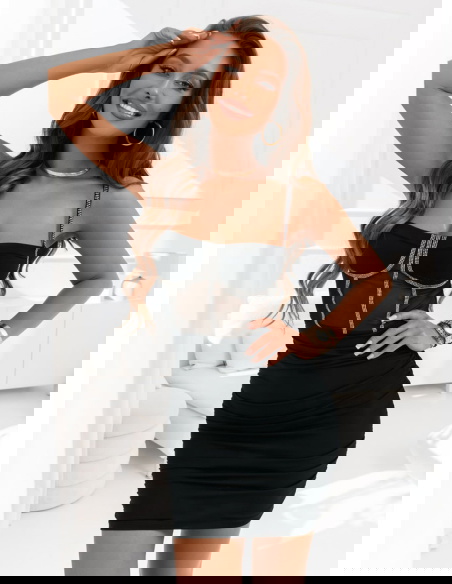 Czarna dopasowana sukienka z ozdobnymi kryształkami Ivana
