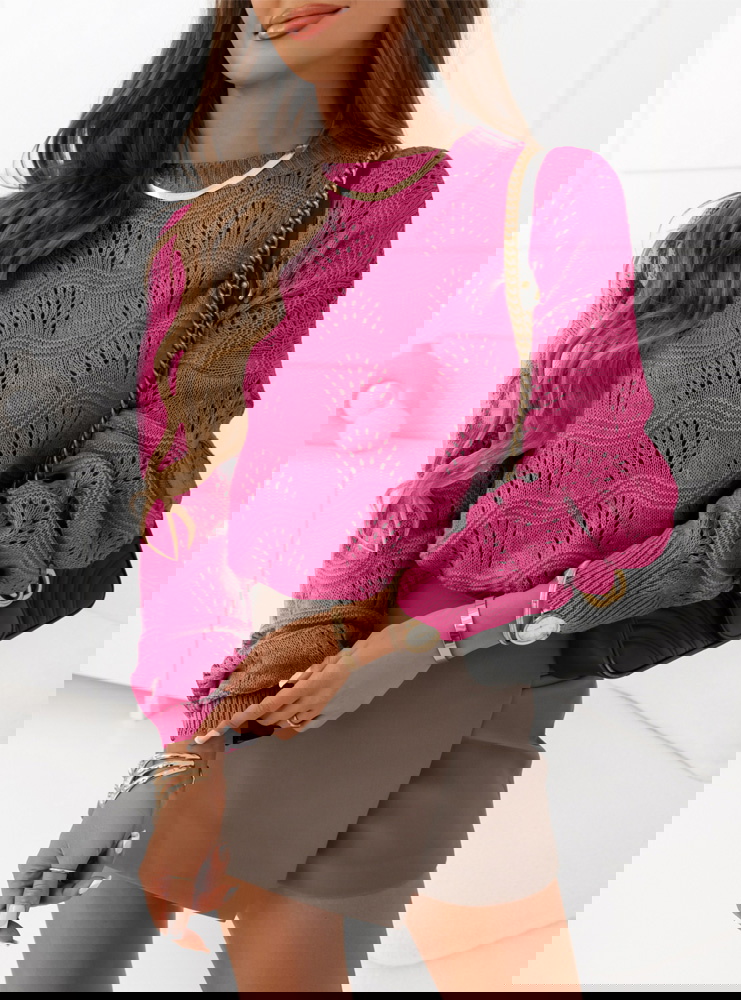 Ażurkowy sweter Lozii - fuksja Z łatwością zestawisz go zarówno z jeansami, jak i spódnicą, tworząc wyjątkową i modną stylizację.