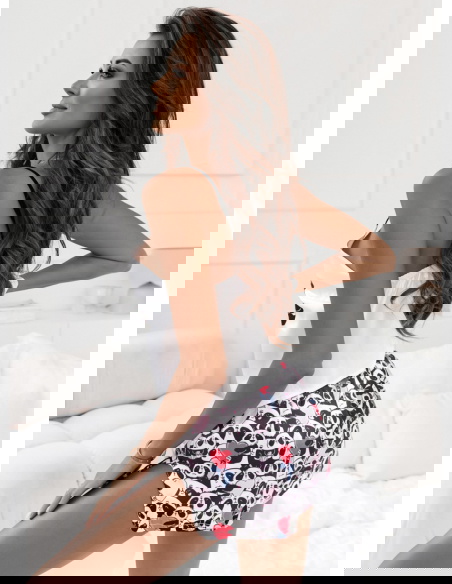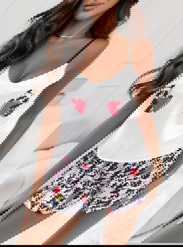 Malinowa dwuczęściowa piżama z modnym nadrukiem Leloe