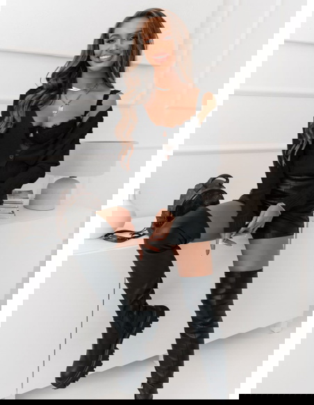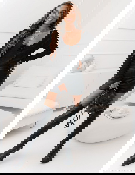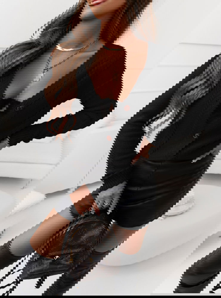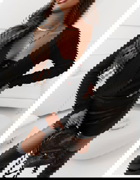 Czarny sweter zapinany na guziki z ozdobnym splotem Anais