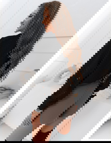 Czarny ażurkowy sweter z ozdobnym splotem Arvena